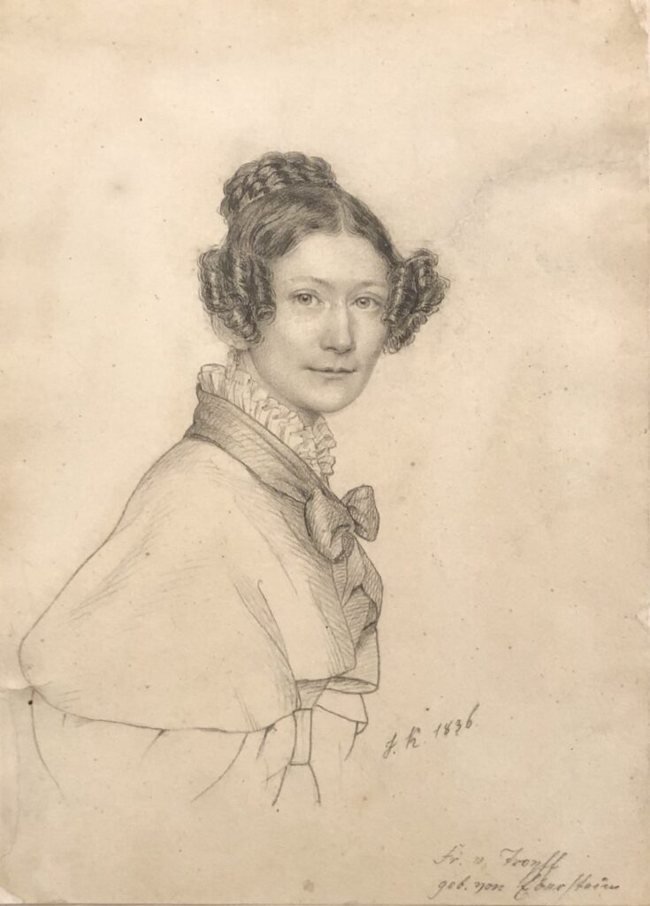 Josef Kriehuber (1800-1876), Portrait présumé de Maria Kriehuber, femme de l’artiste, 1836, crayon sur papier, 15 x 20,7 cm, monogrammé JK et daté 1836 en bas à droite