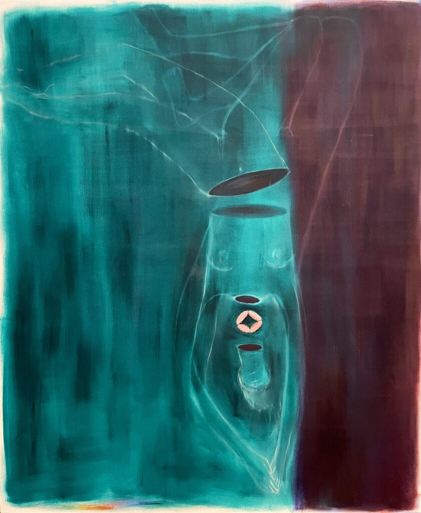 “Painting has always been a place for me to engage with this question I have of how separate I am from the world around me. Where do I begin? Where do I end? In space? In time?” Rather than offering definitive answers, Amorelle Jacox’s (b. 1994) paintings multiply angles of approach to probe these fundamental questions more deeply. The artist favors a metaphorical treatment that owes much to poetry and its relationship to the ineffable.
