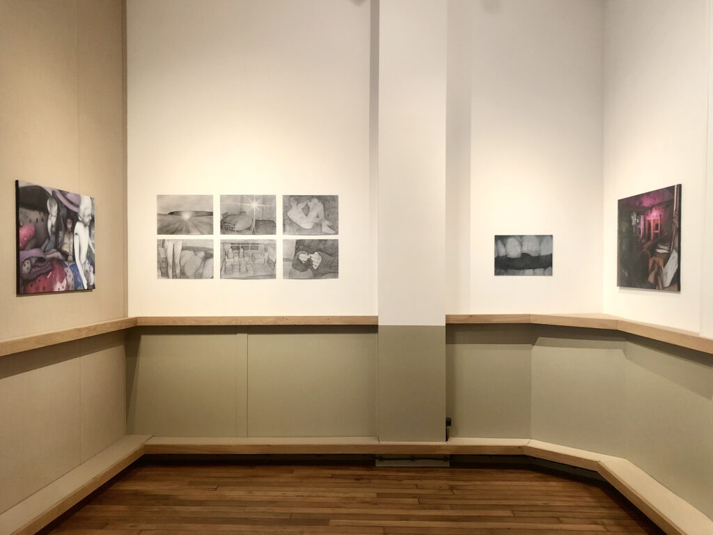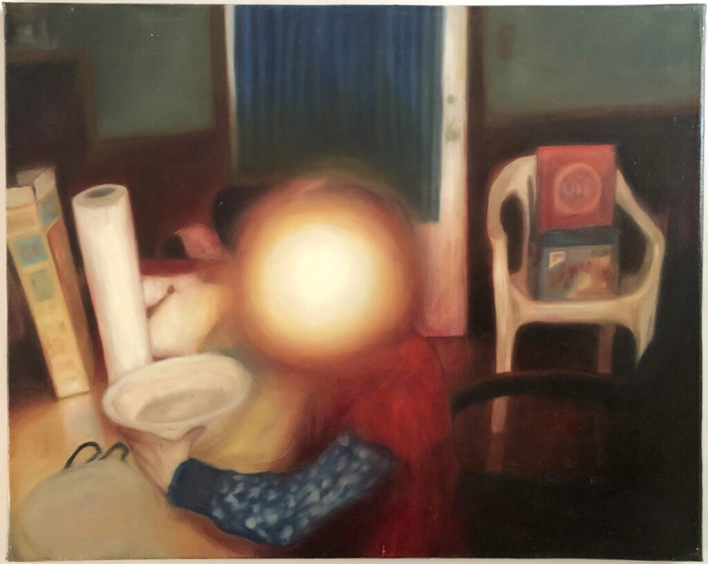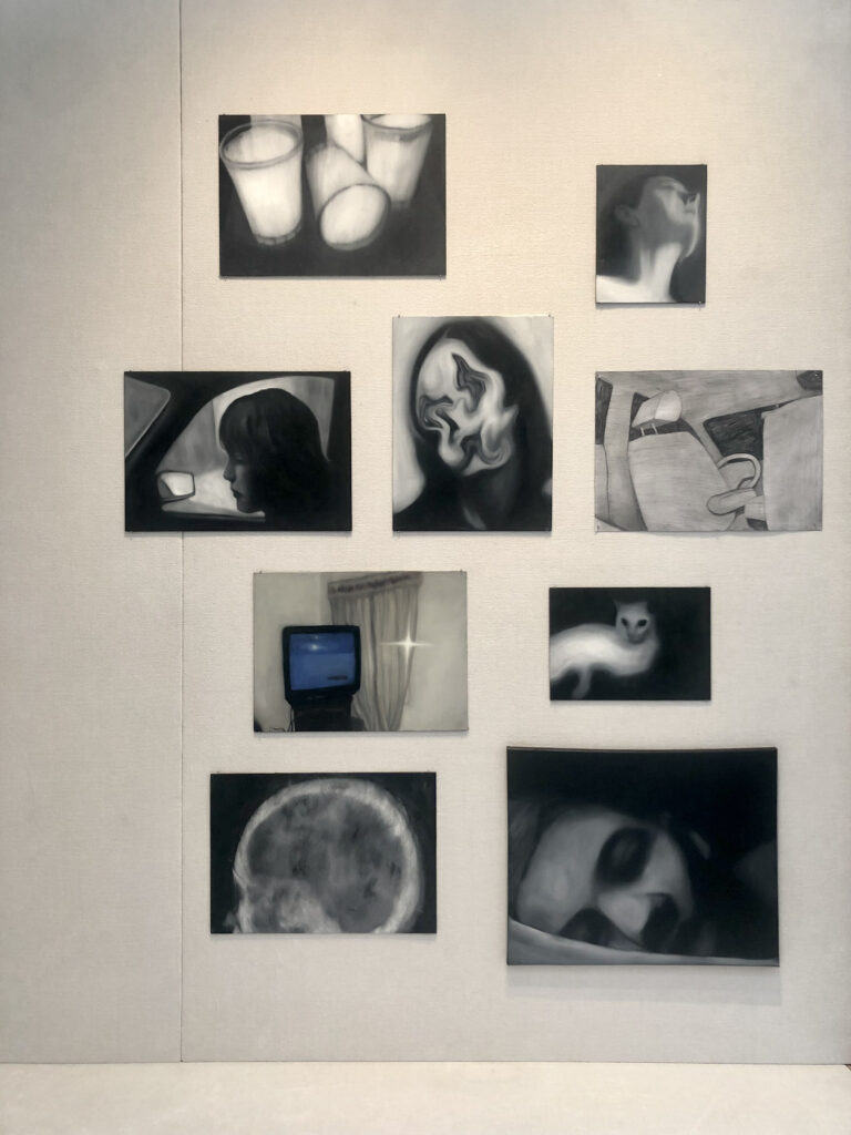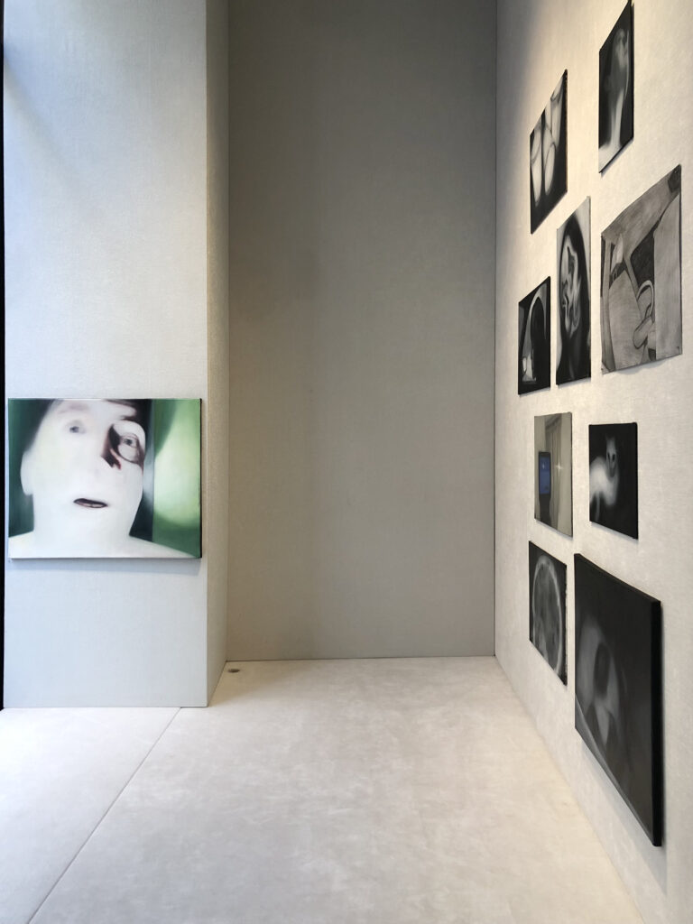 Autres motifs récurrents, les espaces confinés, les intérieurs de voitures, les couloirs étroits, les corps recroquevillés ou les visages distordus trouvent leur origine dans des rêves et des souvenirs qui refont surface tels des flashbacks. Chaque image, pour ne pas dire chaque vision, semble ramener sur les lieux d’une rupture brutale. Elles convoquent un événement implicite, une histoire qui se laisse deviner sans jamais se dévoiler complètement, mais dont les enjeux affectifs s’imposent d’eux-mêmes. Tout est suggéré, une table, des chaises vides, une maison, un simple visage suffisent pour exprimer avec force la solitude, la douleur et la fragilité. C’est là que repose l’intensité de cette œuvre, dans sa dimension narrative née de la tension entre le dévoilement et le refoulé.